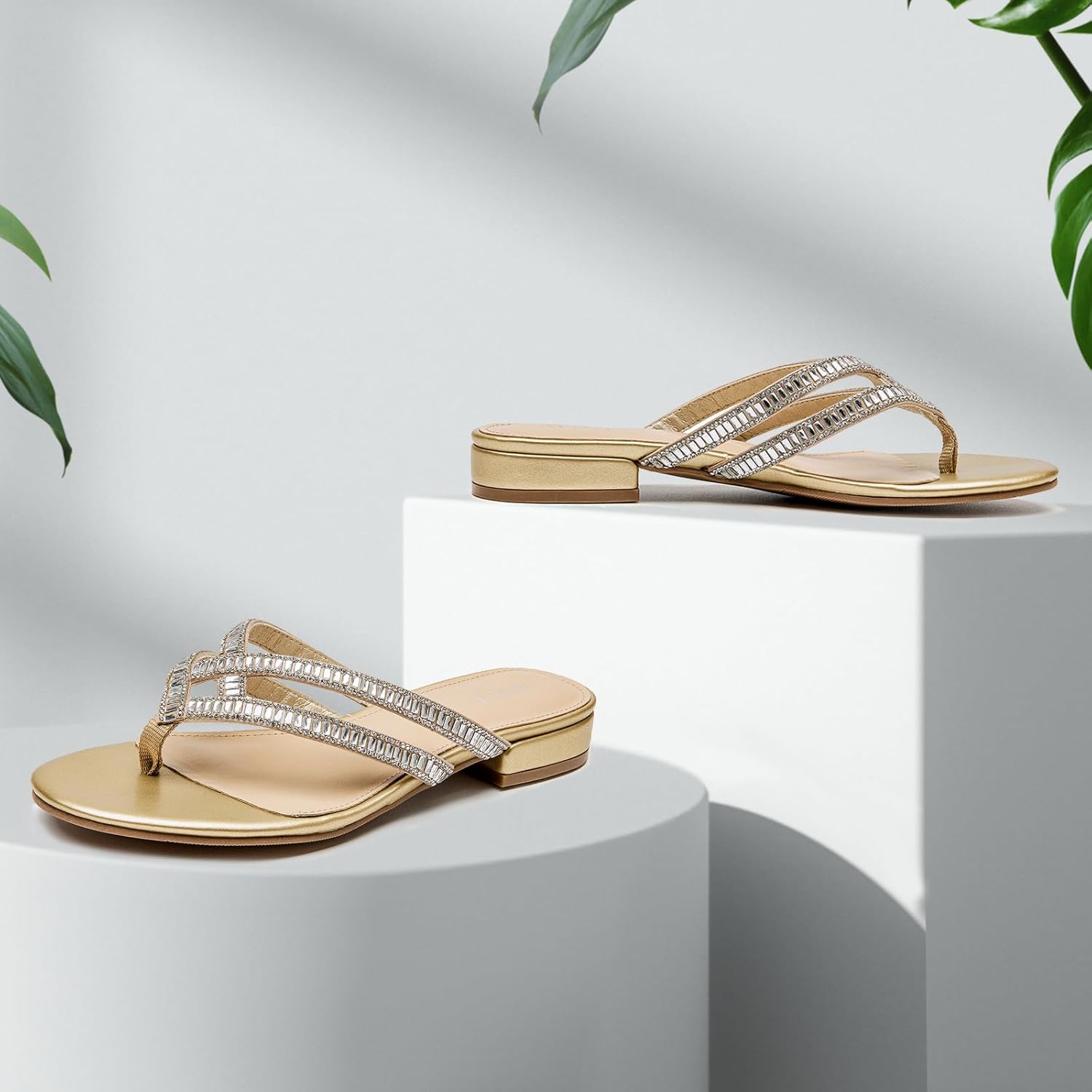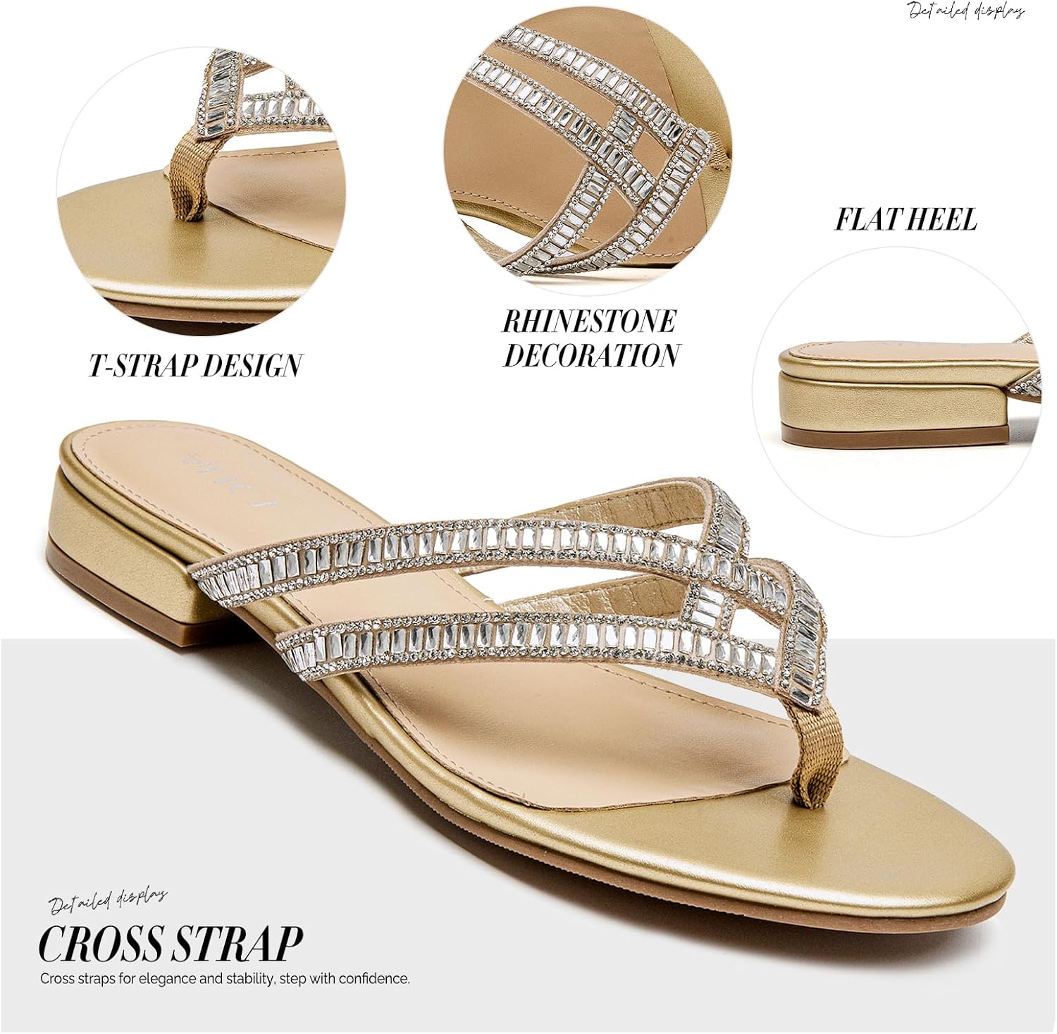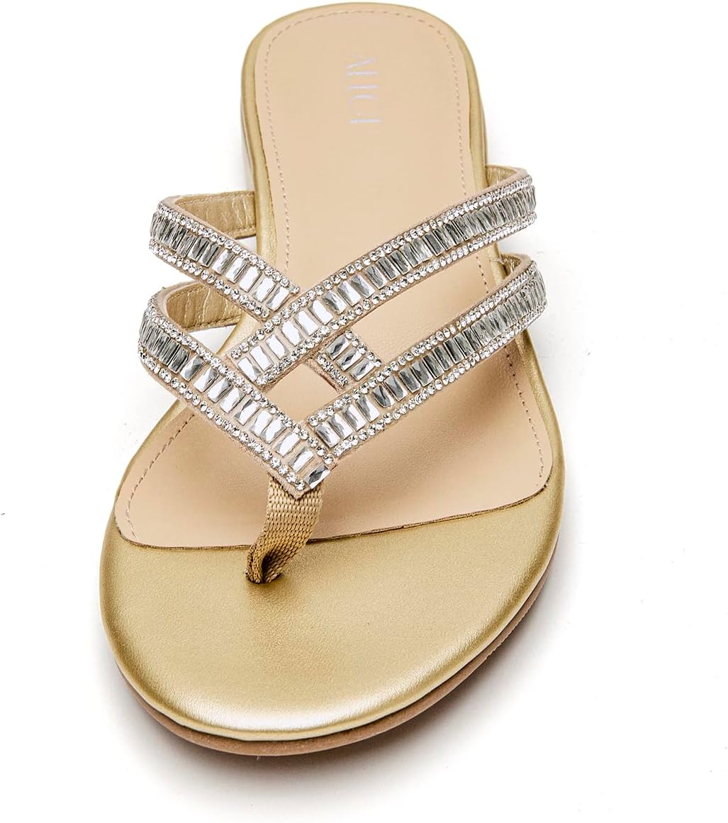 ALLOT Women’s Rhinestone Flip Flops Fashion T-strap Flat Sandals Cross Straps Dressy Summer Slip On Open Toe Slides