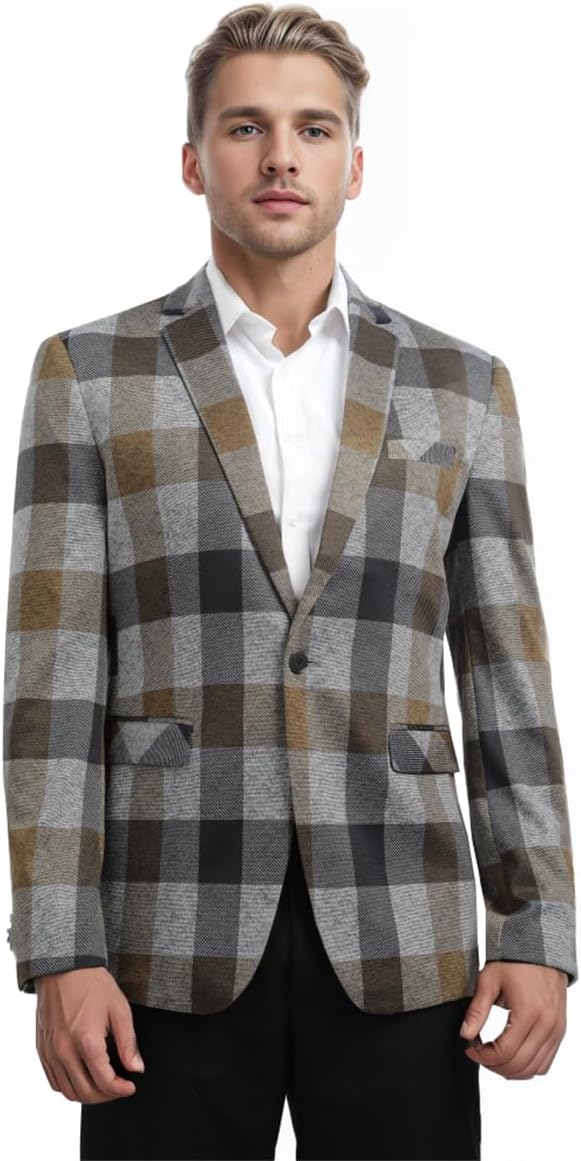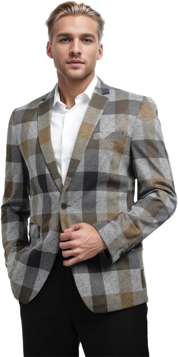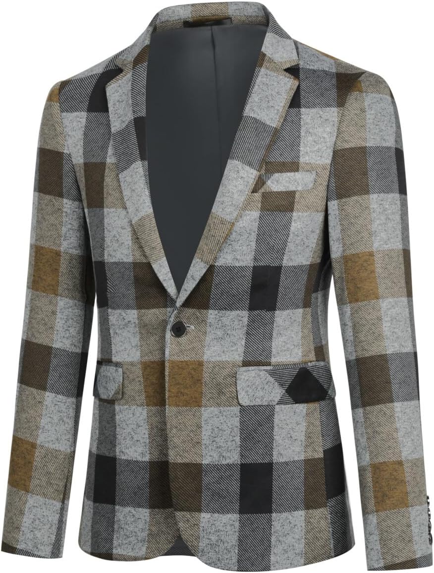 Boyland Men’s Casual Suit Blazer Jackets Lightweight One Button Sport Coats Plaid Blazer