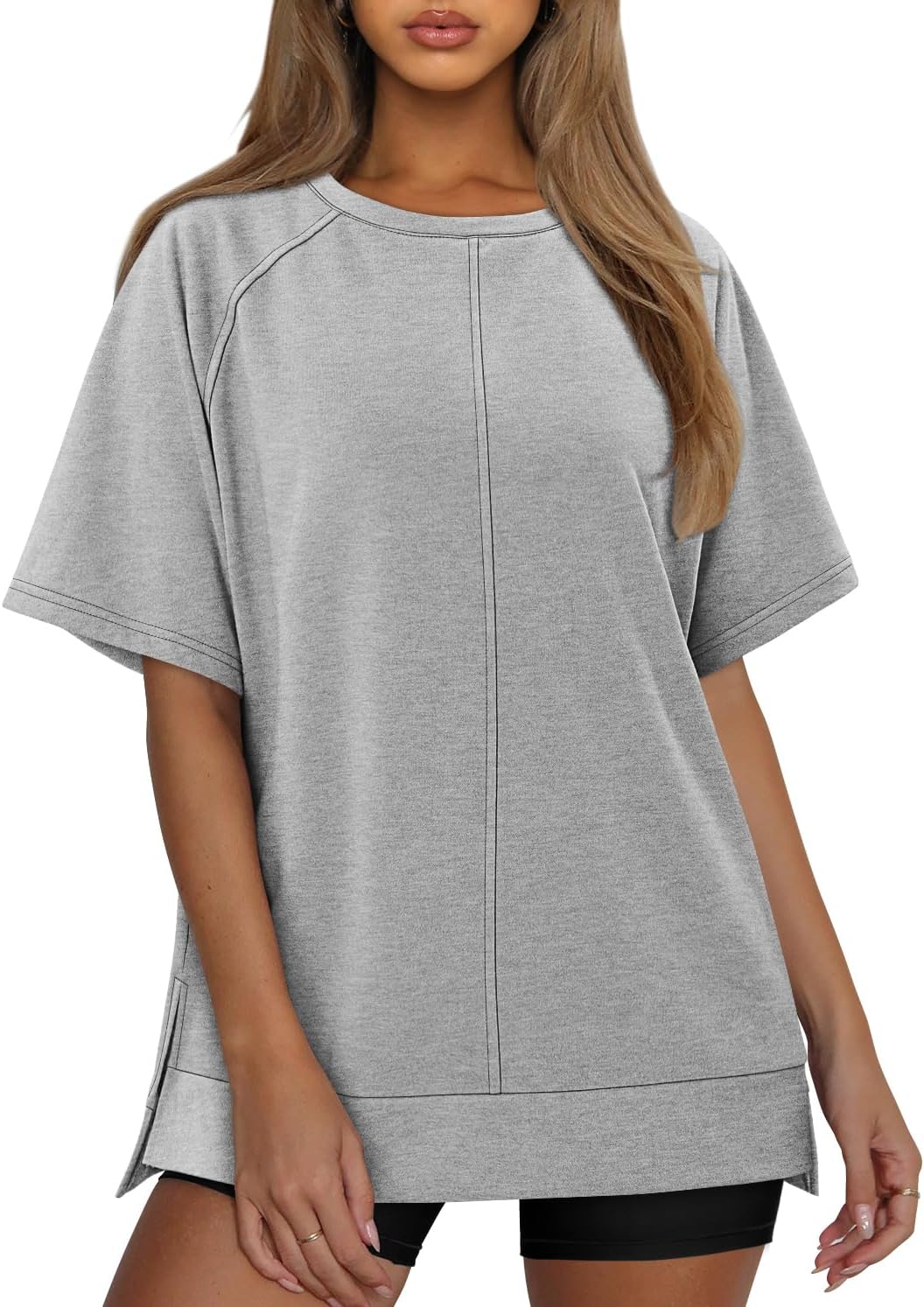 Summer Tops for Women Basic Crewneck Loose High Low Outfits