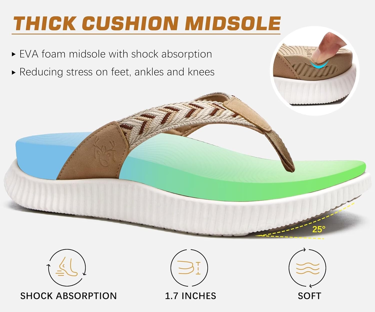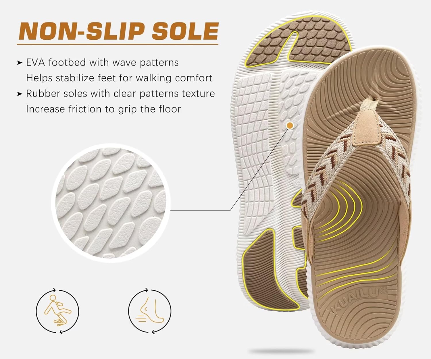 KuaiLu Womens Fashion Orthotic Flip Flops Ladies Athletic Thick Cushion Recovery Thong Sandals Slip On Memory Foam Walking Sandles With Comfortable Plantar Fasciitis Arch Support