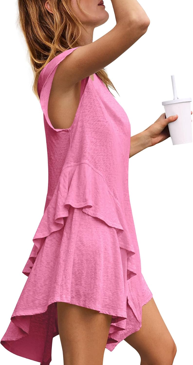 LAMISSCHE Womens Ruffle Dress Summer Short Sleeve Mini Dress Flowy Beach Vacation Dresses Cute Sundress