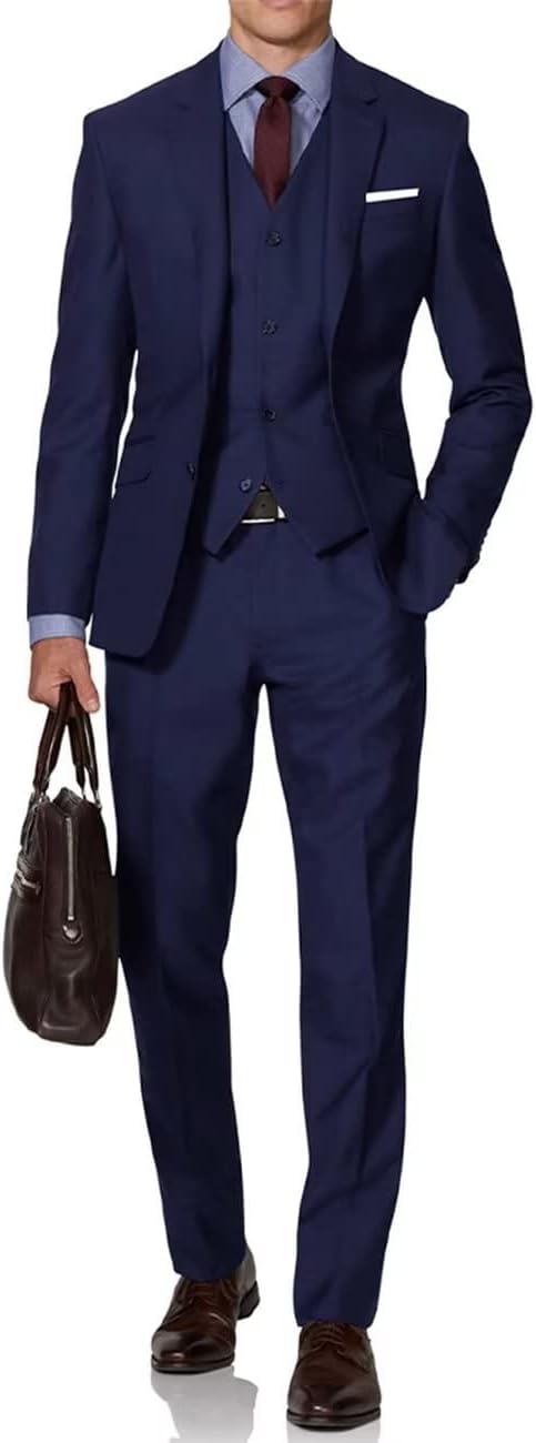 Mens Suit Solid Two Button Slim Fit Suit Set for Wedding Formal Business Suit Men 3 Piece Suit Blazer Vest Pants Set