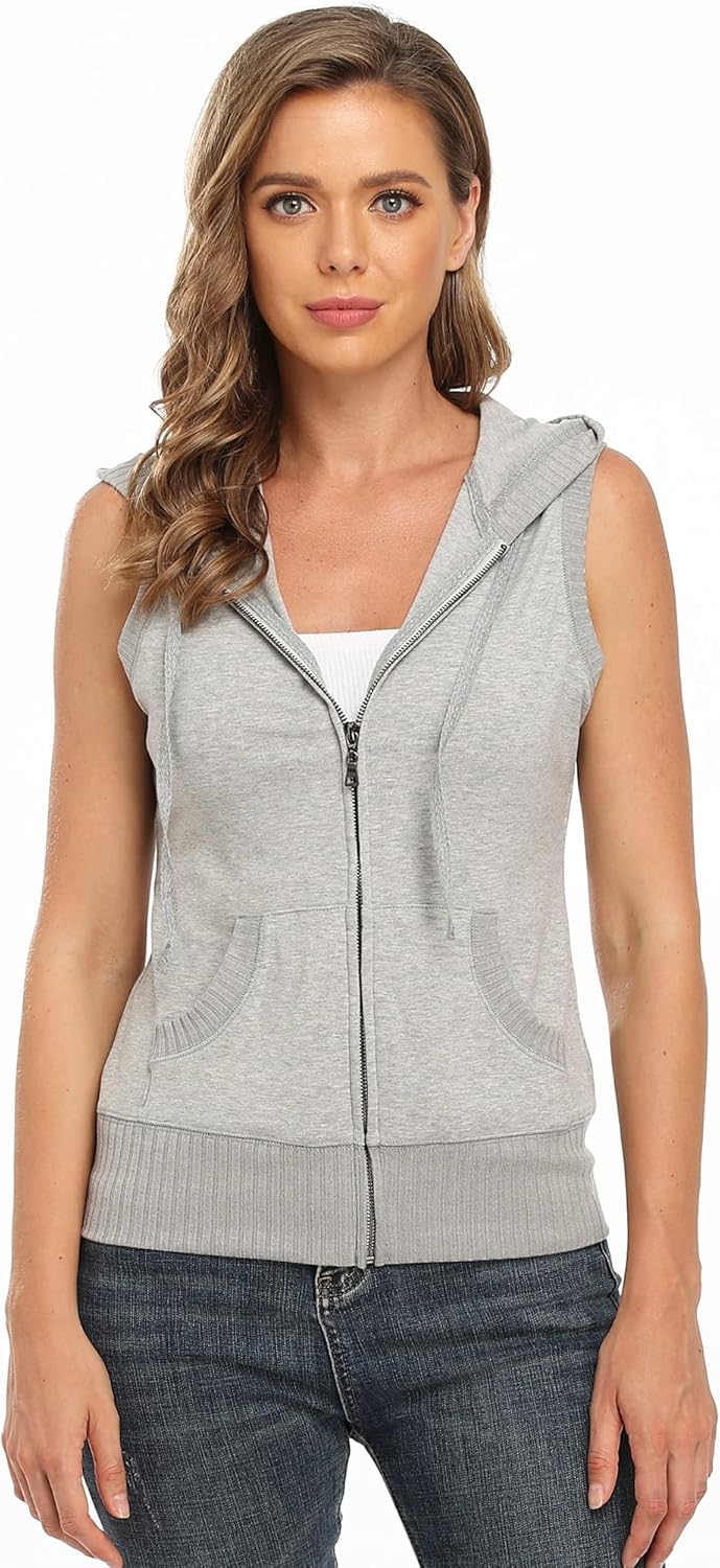 MISS MOLY Women’s Sleeveless Hoodies Sweatshirt Basic Solid Zip Up Vest Hoodie