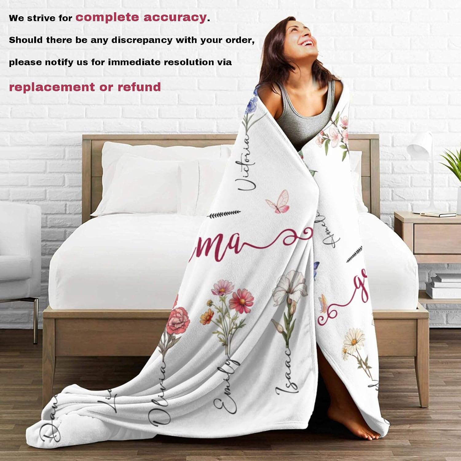 💐Personalized Blankets for Mom: Made and shipped in the USA. Birthday flowers, names can be customized with all the information you want. The custom birth month flower blanket allows for a personal touch by incorporating the recipient’s birth month and favorite colors. It creates a unique and meaningful gift that celebrates their individuality and holds sentimental value.