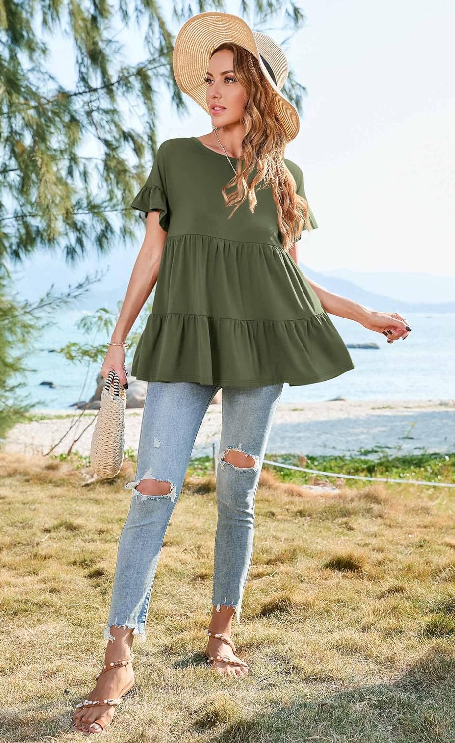 This flattering babydoll top is the perfect top to take you into summer!