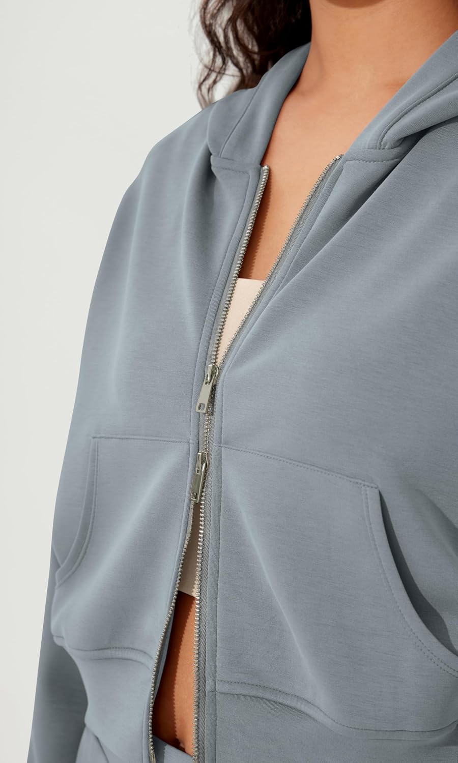 Modal Soft Full-Zip Cropped Hoodies feature a 2-way zipper for versatile styling options.