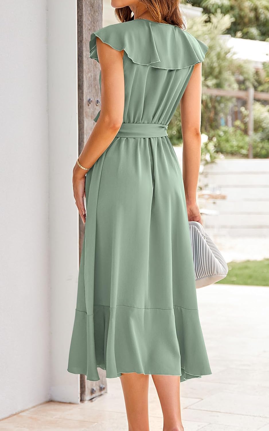 Tie Waist Fixed Wrap V Neck Ruffle Dress Wedding Guest Dresses for Women 2025
