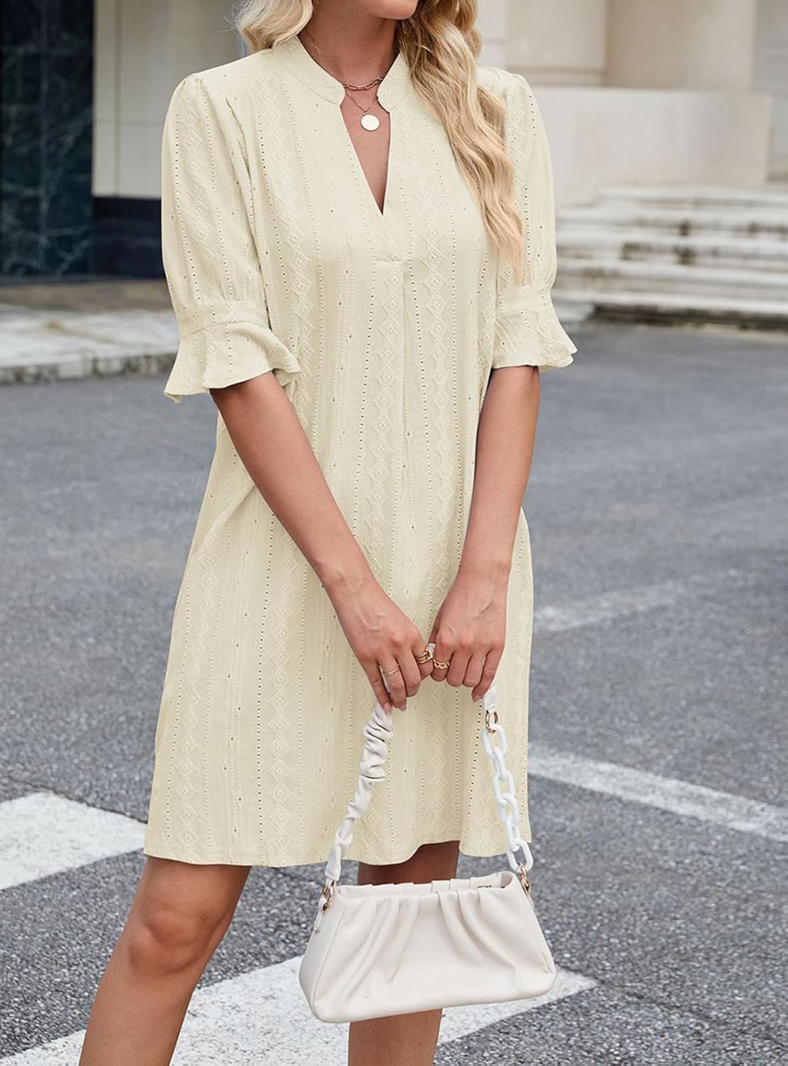 Shirts Dress for Women V Neck Short Sleeves Casual Flowy Summer Cover Up