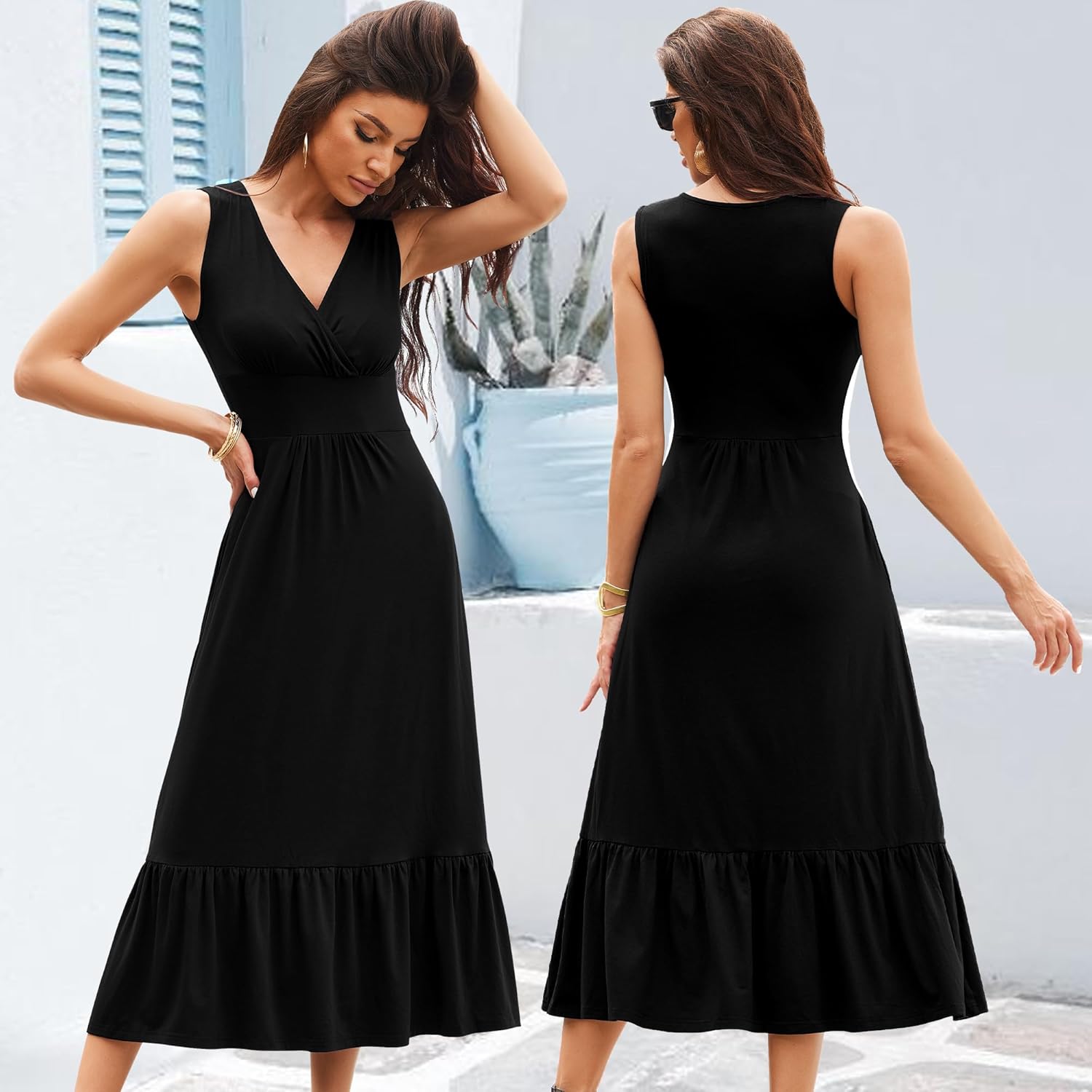 Deep V Neck Sundresses for women – Wedding Guest Dresses for Women With Sleeveless, Bridesmaid Dress. It is Stretchy, Soft, Super Comfortable.