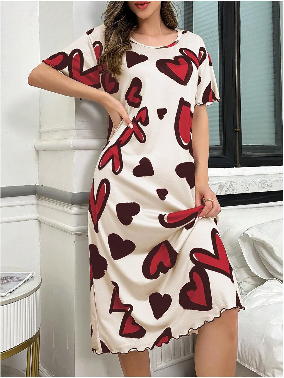 SweatyRocks Women’s Cute Heart Graphic Pajama Dress Short Sleeve Straight Loose Sleepshirts