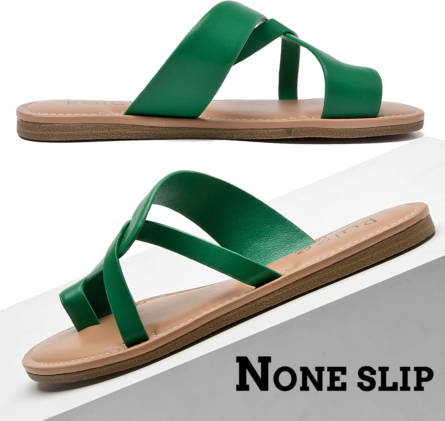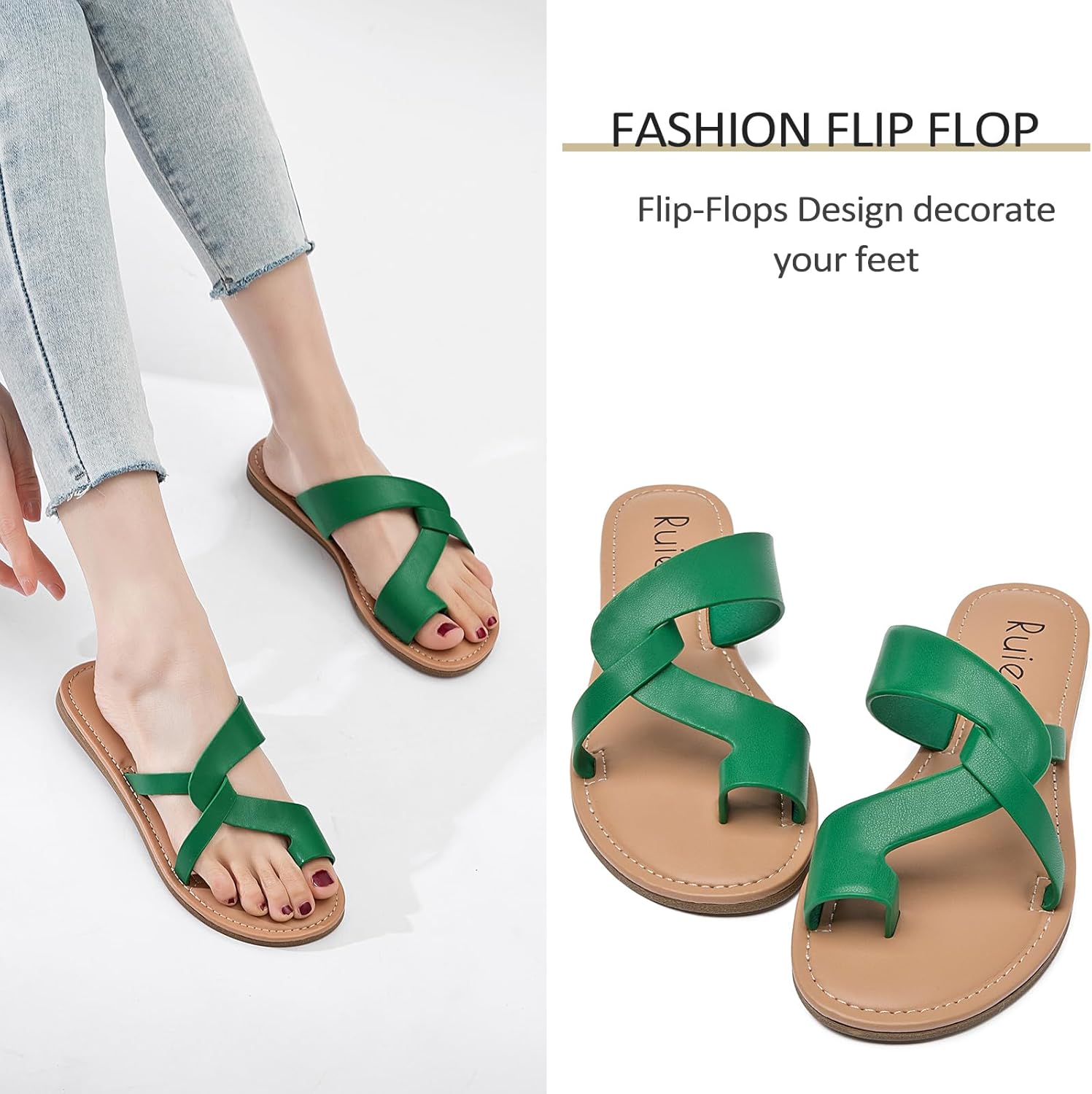 Women’s Flat Slides Sandals, Summer Flip Flops Comfort Round Open Toe Slip On Strap Thong Beach Shoes for Women.