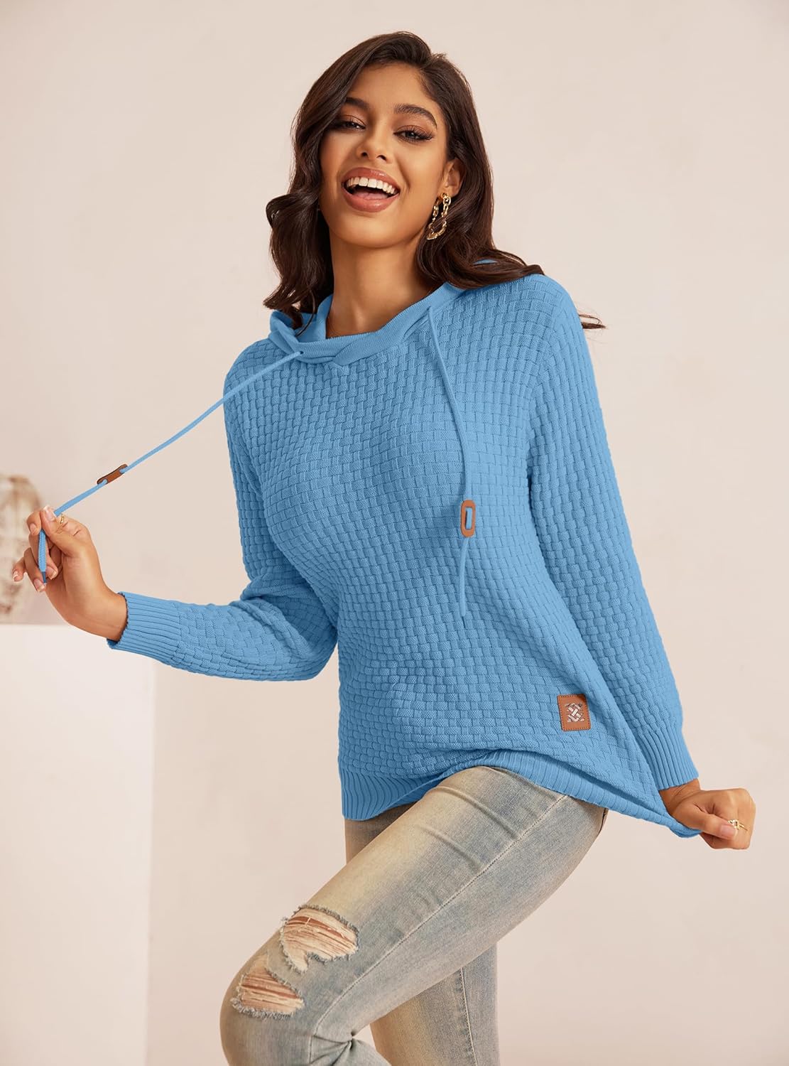 Zaitun Womens Hoodies Long Sleeve Sweatshirts Fashion Slim Waffle Casual Basic Drawstring Pullover Sweater